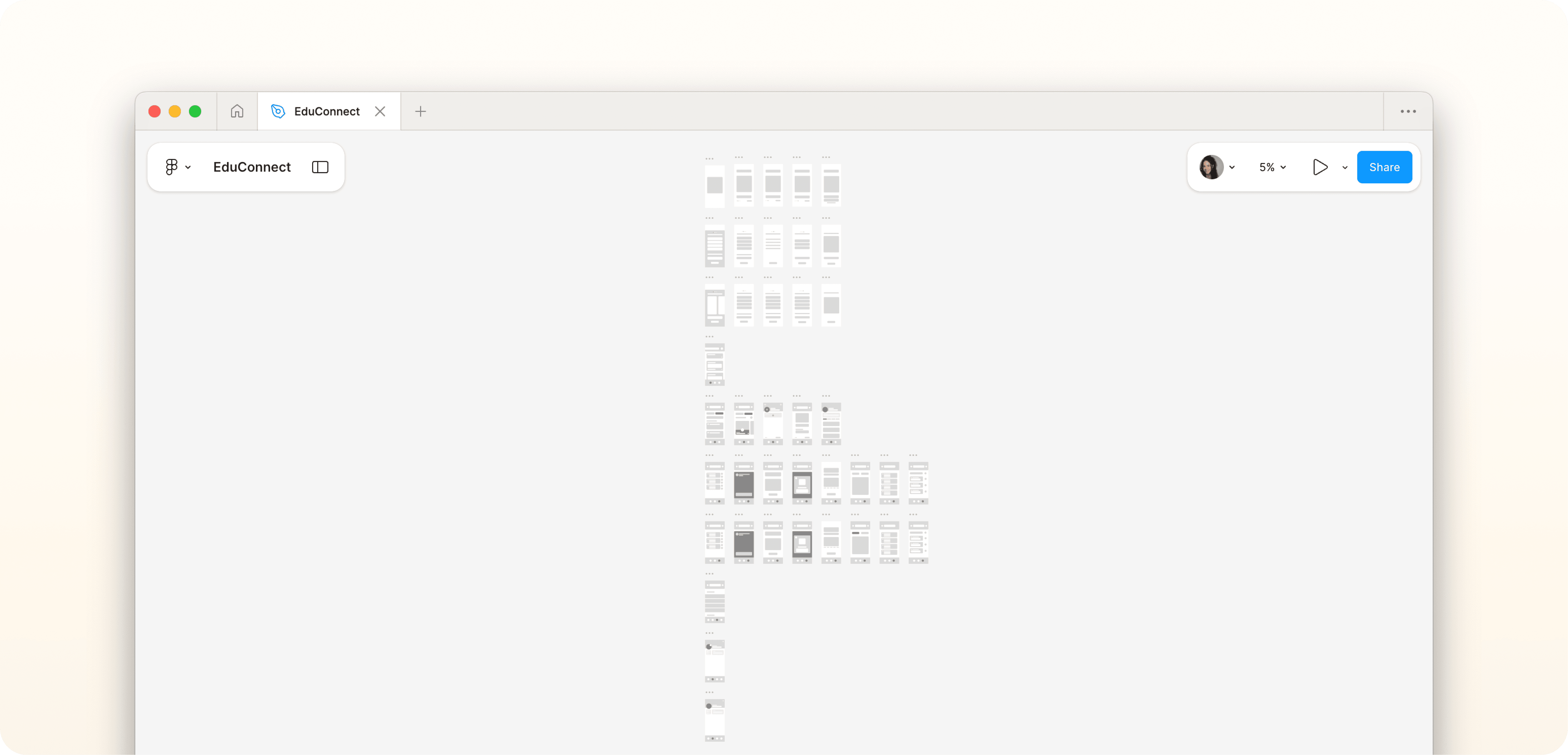Wireframes: Utilizando o Figma como ambiente de exploração, desenvolvi os primeiros rascunhos das telas, materializando o que havia sido definido na ideação. Esse momento foi essencial para traduzir ideias em experiências palpáveis, testando estruturas, organização de informações e possibilidades de interação que dariam forma ao Edu Connect.